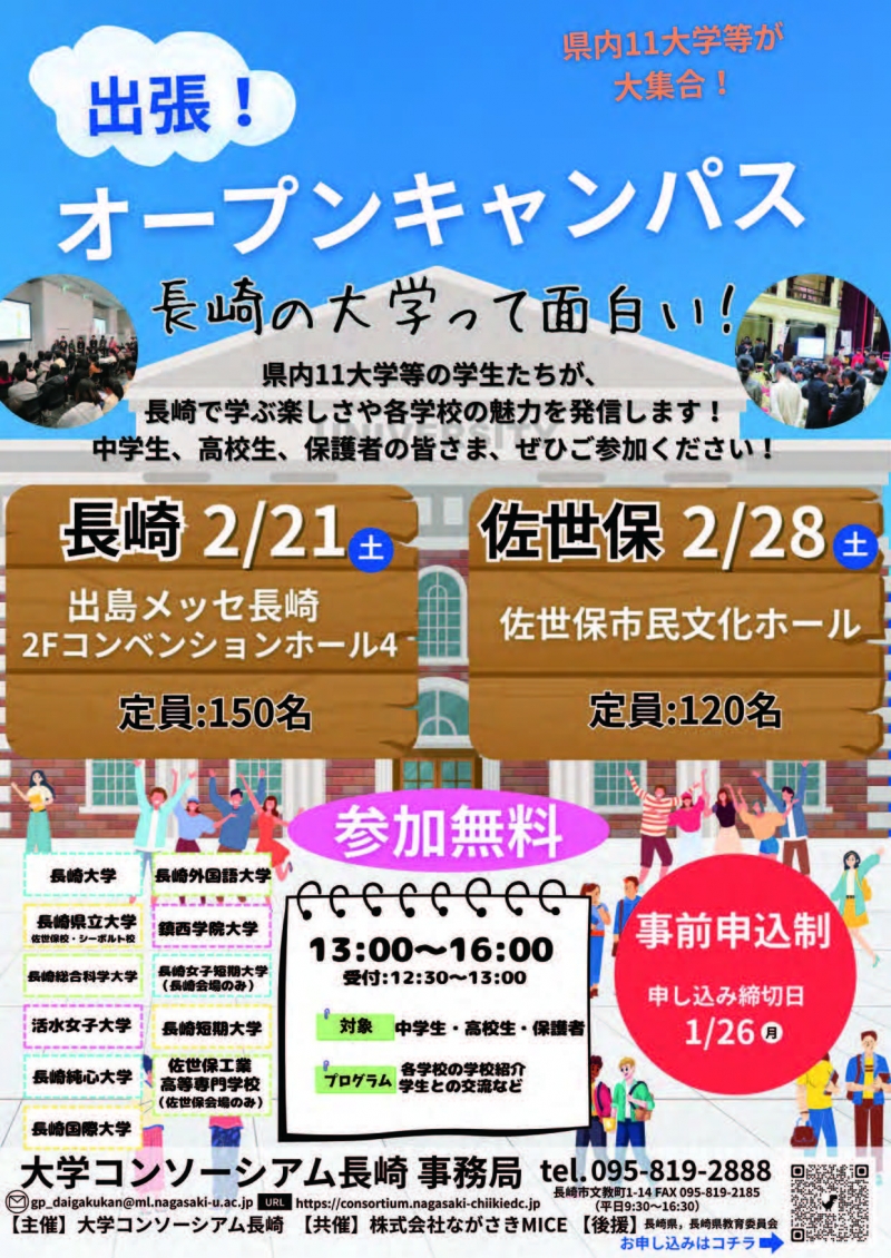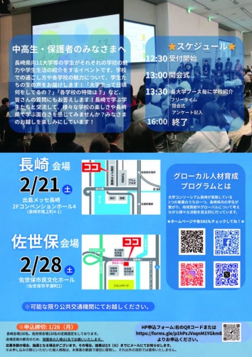 長崎県内の大学・短大・高専の各学生が、それぞれの学校や学生生活の紹介を行うイベントで、長崎県ならびに長崎県教育委員会が後援しています。