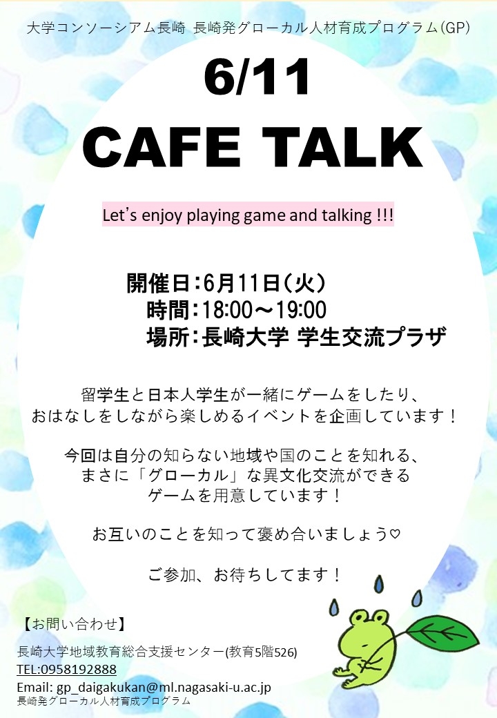 本プログラム(南部ブロックGP)の定例活動でもある“カフェトーク”を開催します。