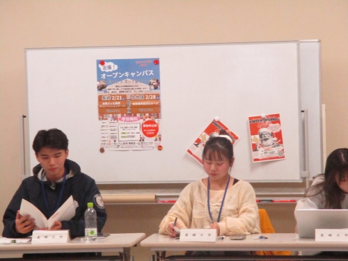第2回学生企画運営協議会(学生合同会議)が12月5日(金)18:00~19:00に長崎大学教育学部棟で対面およびZOOMで開催されました。 今回は、2026年2月に開かれます「出張!オープンキャンパス」に向けた準備について主に協議しました。 県内11の大学・短大・高専の代表学生等が、対面で20名・オンライン(ZOOM)で17名の計37名参加しました。