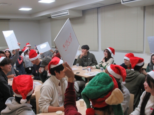 12月17日に、Winter Sparkle Partyが長崎大学文教キャンパス・葉國璽交流会館1階コミュニティーラウンジにて開催されました。本イベントは、1年生のみで初めて企画・運営を行った交流会であり、日本人学生と留学生が参加しました。